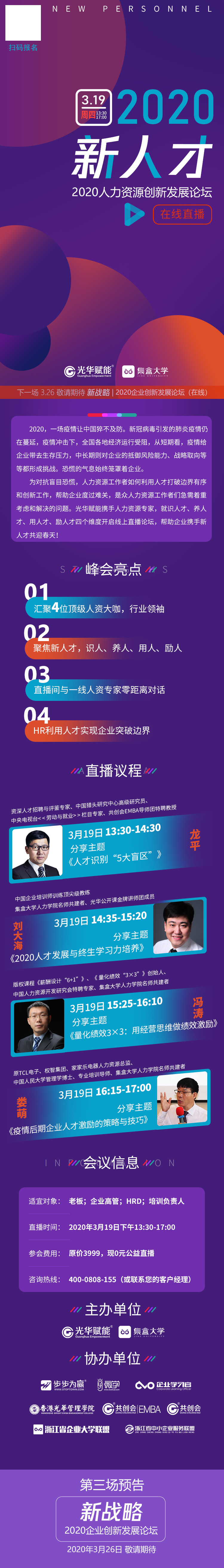 | 活動(dòng)名稱:3.19丨新人才2020人力資源創(chuàng)新發(fā)展論壇 | |