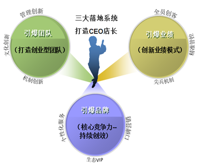 管理創新:落地3.0時代管理模式,激活員工動能 文化創新:落地店鋪創新文化,正能量團隊自主成長,打造創業型終端團隊 機制創新:落地創新機制,能根據市場變化及時做出靈活快速的反映 |