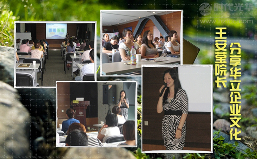 首先,華立管理學院院長王安瑩為我們分享華立的企業文化。通過對華立企業文化——“水文化”講解的同時,也淺顯易懂地傳授了“文化軟實力與企業管理”等方面的觀念。在交流過程中,會員們也積極表達自己的觀點,發揮自己平常所積累的經驗和知識,諸如提到《老子》里的“上善若水”和水的包容特質,與王安瑩院長互動,過程輕松且愉快。