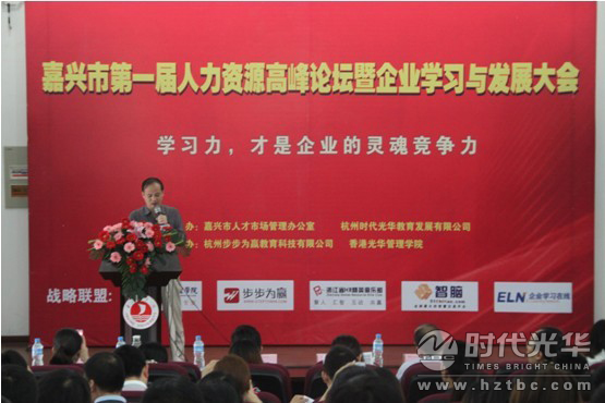 2012年5月25日,由杭州時代光華教育發(fā)展有限公司、杭州步步為贏教育科技有限公司、香港光華管理學(xué)院與嘉興市人才市場聯(lián)合主辦的第一屆嘉興市人力資源高峰論壇暨企業(yè)學(xué)習(xí)與發(fā)展大會在嘉興學(xué)院順利拉開序幕。出席本次大會的嘉賓有嘉興市人才管理辦公室主任陳森榮,杭州時代光華總裁、香港光華管理學(xué)院執(zhí)行院長方永飛,時代光華副總裁、步步為贏企業(yè)大學(xué)校長楊陽,浙江雅瑩服裝人力資源總監(jiān)呂虹,新秀集團(tuán)人力資源總監(jiān)鳳偉,時代光華企業(yè)網(wǎng)院資深架構(gòu)師宋曉坡等。本次大會的主題是:學(xué)習(xí)力,才是企業(yè)的靈魂競爭力!帶著共同的信念,來自多家企業(yè)的三百多位嘉興HR精英、中高層領(lǐng)導(dǎo)齊聚一堂,共同探討提升企業(yè)學(xué)習(xí)力.