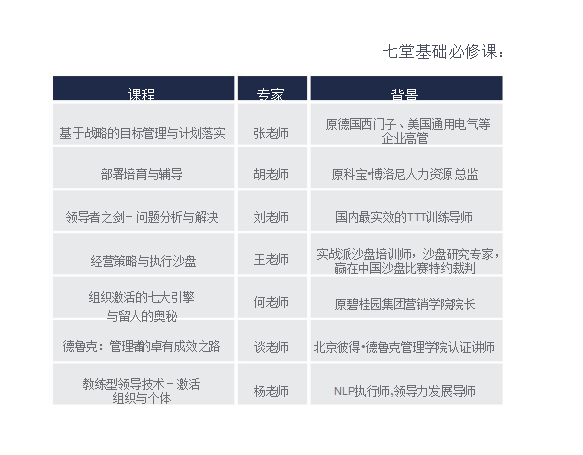 2、課程體系注重“實戰”、“實效”性:職業經理人項目課程設置以“實戰”為導向,“效用”為宗旨,理論聯系實際為原則。系統修煉,超越自我;全面提升,造就卓越。