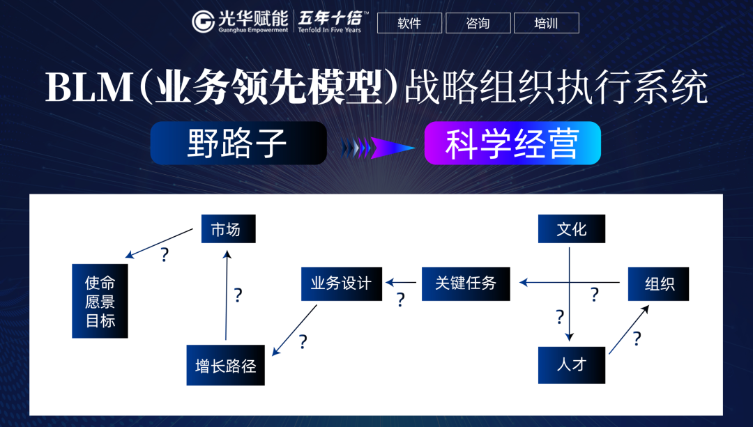 BLM 管理師認證項目,由杭州光華賦能董事長方永飛親自授課。1000 多頁的 PPT 誠意滿滿,凝聚著方教授數十年來的心血與管理智慧。不同于市面上針對個別知識點的碎片化學習,BLM 課程有著完整的底層架構和極強的體系性。這是一套戰略規劃與執行落地的 “組合拳”,幫助企業管理者系統掌握行之有效的工具和方法。方永飛教授的BLM培訓課程始終圍繞著“知行合一,才是王道”進行開發的。