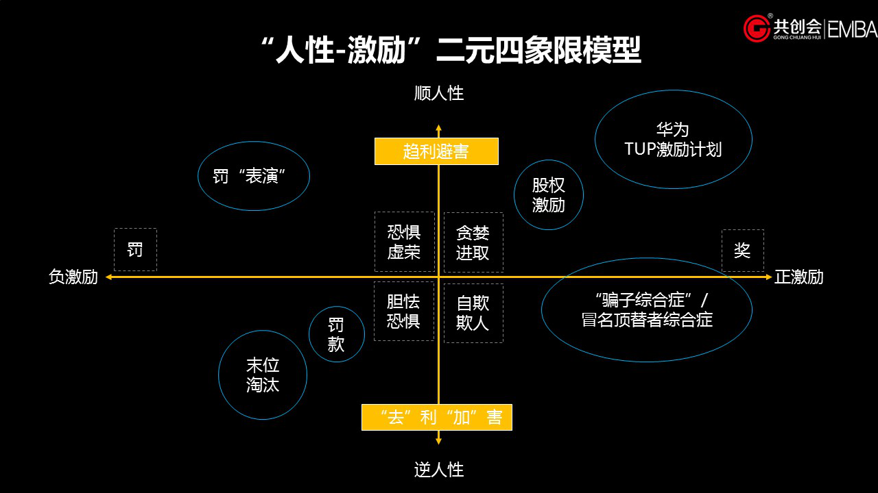 在這個(gè)象限中,從根本上說(shuō),企業(yè)往往是逆著人性中的“趨利避害”,基于“自欺欺人”的人性,采取了正向激勵(lì)的方式。