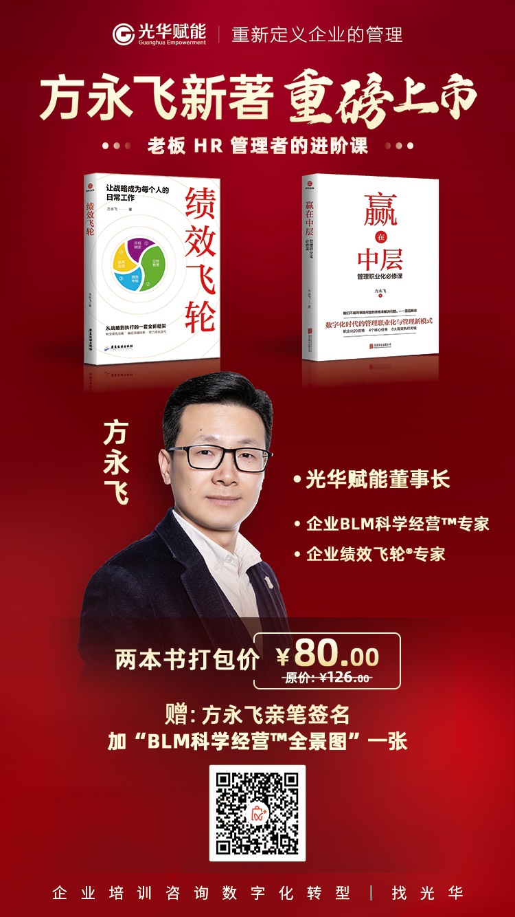 方永飛老師剛剛出品了《績效飛輪》、《贏在中層》(第四版)兩本新書,最近很多公司老板和管理層都在紛紛團購,好評如潮,值得每個企業人購買和學習。