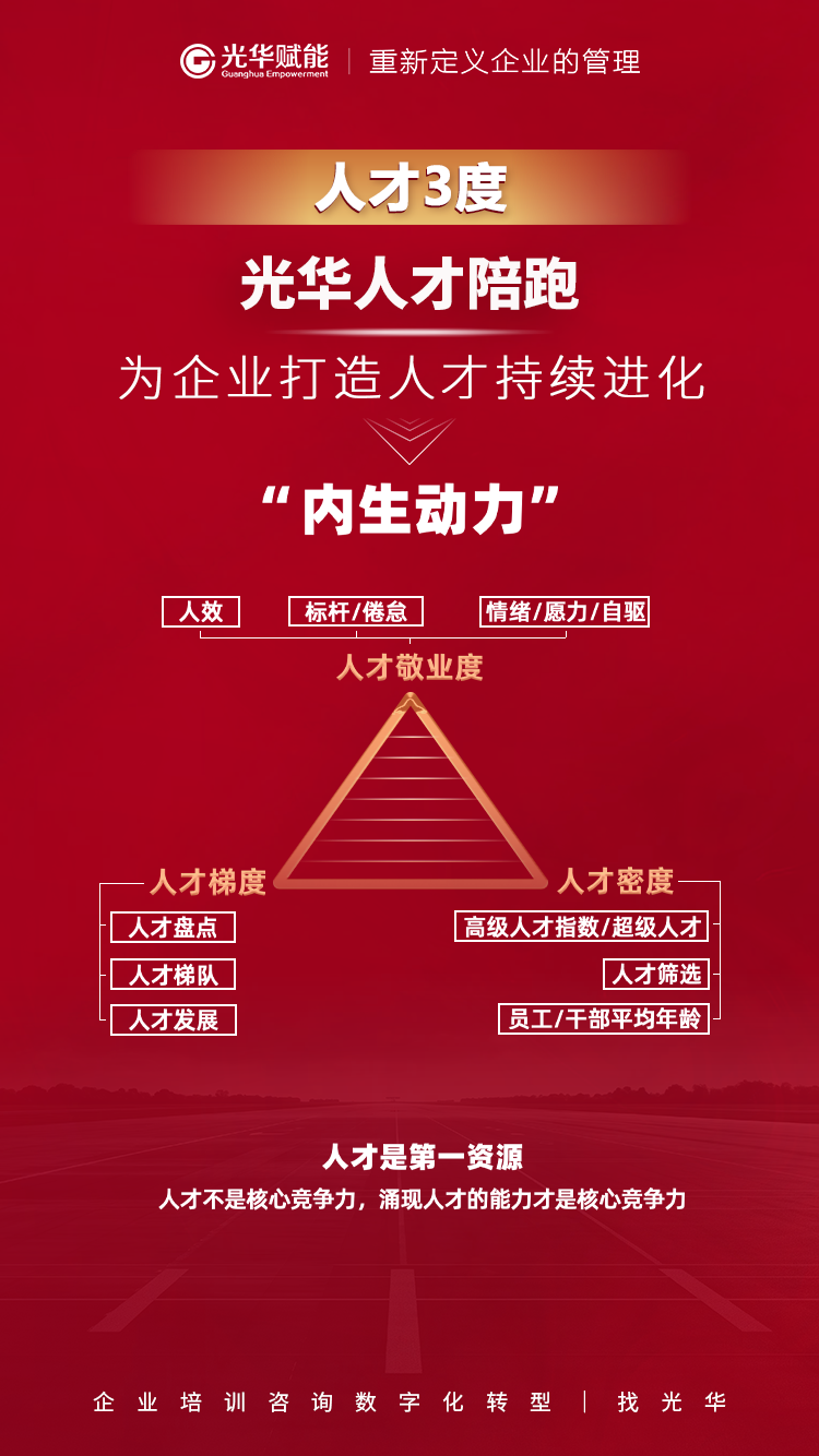 光華針研發出了BLM科學經營人才3度理論:人才梯度、人才密度、人才敬業度。作為企業來說,最重要不是有多少人才,而是如何建立涌現人才的機制。針對人才,光華認為中小企業最重要是選育用留的“篩選”,重點是根據資源、能力、經驗三個方面來篩選優秀人才。