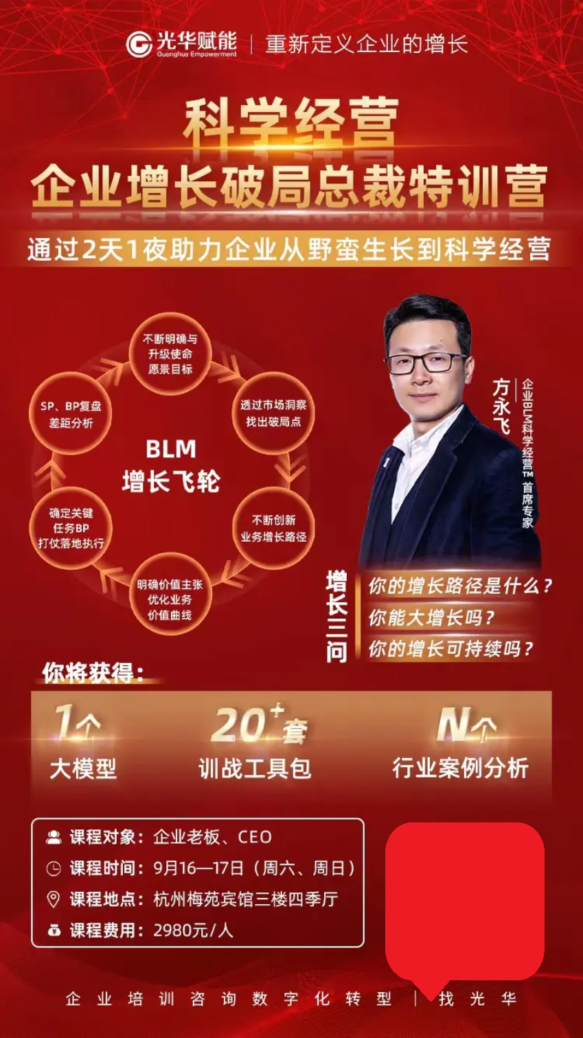 經歷過靈魂拷問,是不是發現了自己需要彌補的不足和缺陷,9月份是不是該出來學習學習了!參加科學經營:企業增長破局總裁訓戰營,方永飛教授讓您逆勢而上!