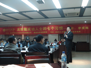 在十一月二十日至二十一日,五十余位企業(yè)精英與李成林老師相聚在時(shí)代光華的公開課堂上,以《高效能成功人士的七個(gè)習(xí)慣》為課題,開展為期兩天的研討學(xué)習(xí)。在學(xué)習(xí)的一開始,第一環(huán)節(jié)便是破冰與團(tuán)隊(duì)建設(shè),組成四個(gè)大隊(duì),在十分鐘之內(nèi)選舉出隊(duì)長(zhǎng),設(shè)計(jì)好隊(duì)名,隊(duì)呼,然后作一個(gè)獨(dú)特的團(tuán)隊(duì)展示。分別形成了“六朵金花隊(duì)”、“龍飛鳳舞隊(duì)”、“螞蟻部落隊(duì)”、“高人隊(duì)”, 同時(shí)老師也布置了競(jìng)賽規(guī)則,所有回答老師問題的隊(duì)員都將有機(jī)會(huì)抽到老師手中的積分卡為所在的團(tuán)隊(duì)加分。通過這一個(gè)環(huán)節(jié)來自不同行業(yè)不同單位的精英們各自作了交流與認(rèn)識(shí),隊(duì)與隊(duì)的競(jìng)爭(zhēng)氛圍也就此被點(diǎn)燃了!