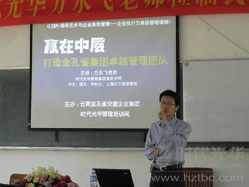 2010年5月8日至9日,云南金孔雀交通運輸集團有限公司火熱舉辦《新贏在中層》培訓,特邀杭州時代光華教育發展有限公司總裁、時代光華教育集團首席講師、品牌課程《贏在中層》創始人方永飛老師親往授課。此次培訓主題是“加強企業中層管理者管理能力建設”,涉及有中層管理者的創新思維與角色定位、新經理人必備的職業素養、高效執行能力及溝通協調能力等方面內容。集團公司領導何家禹、魏佳文、周華明、肖慧群、白云、馬俊、白棋光、賈榮生,公司中層管理人員及業務骨干130人參加此次培訓。